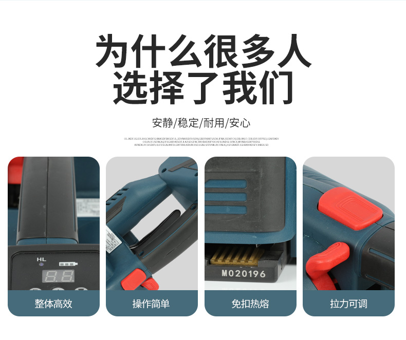 电动塑钢带打包机机器特点: