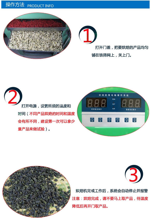 ③ 每次上烘5-25min后,应打开进茶门观察茶叶干燥度。