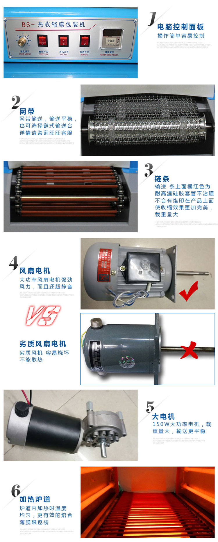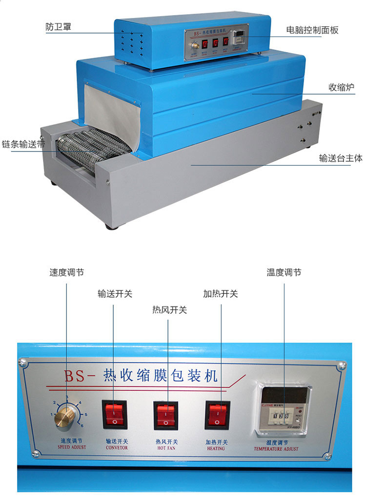 餐具消毒收缩机功能及特点 :本机是将贴体胶膜、片材加热软化后,启用真空吸塑将胶膜、片材按照产品外型完全密着包贴于纸板上,本机无须模具便可一次性完成包装,被广泛用于商业性展示包装及工业保护包装,具有方便、快捷、美观等优点。