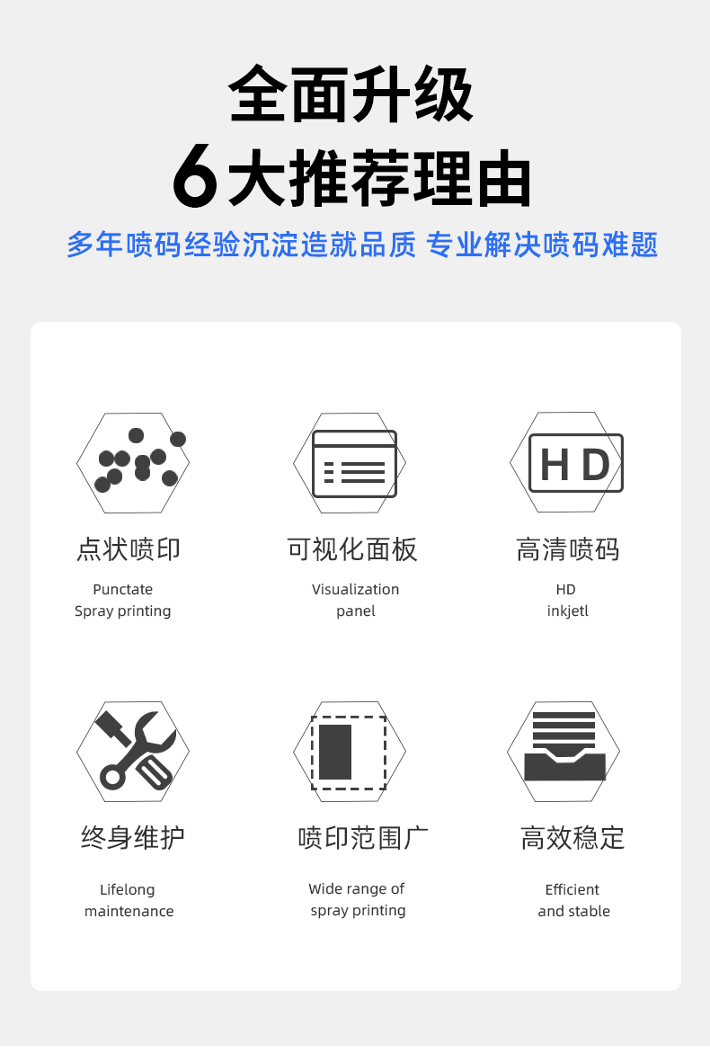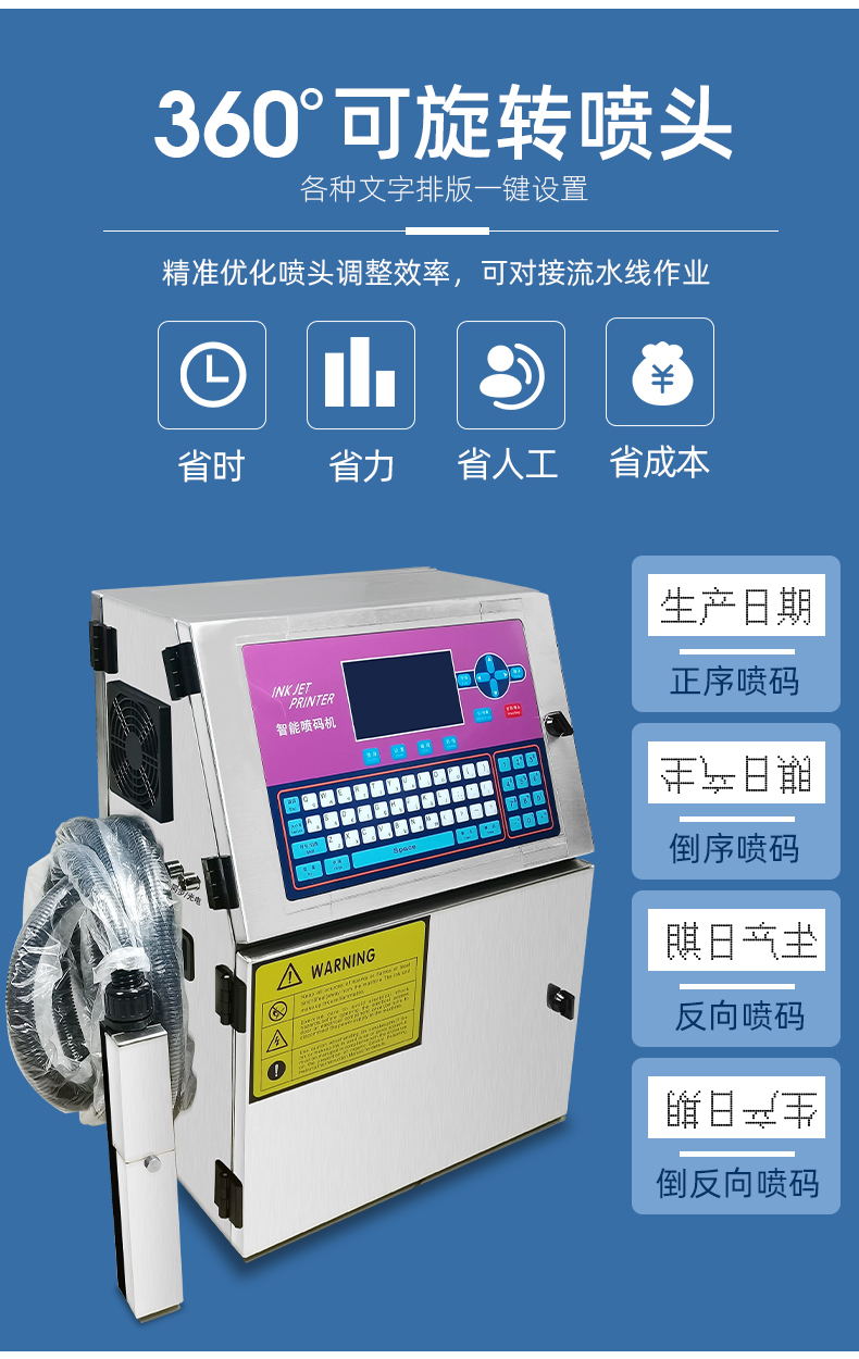 1. 新一代PLus机型采用全新打印模式,镶嵌式喷嘴,双向清洗功能不易堵塞喷嘴。并优化墨滴充电方式,打印字体美观,速度有了跨越式提升,满足线缆线材,高速灌装线等行业要求。