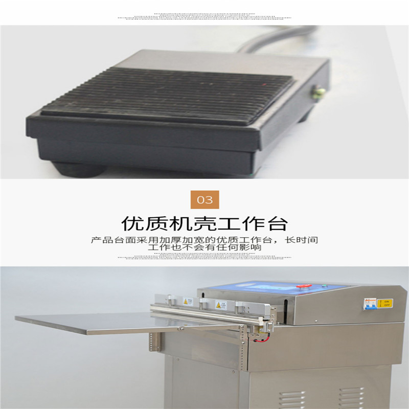 DZ-600W 外抽式气动真空包装机主要适合电子元器件、IC 料盘、托盘、半导体、芯片、电子组件、