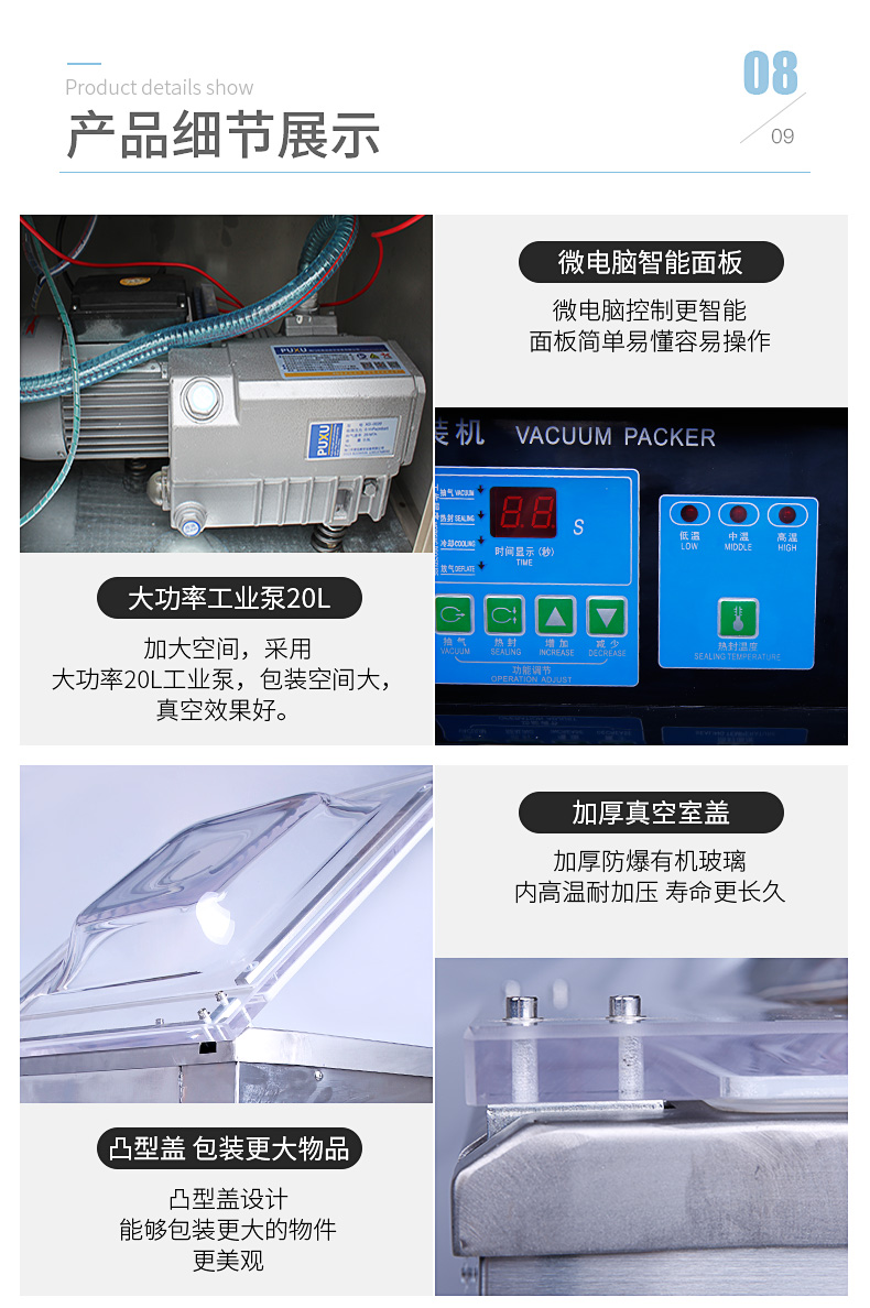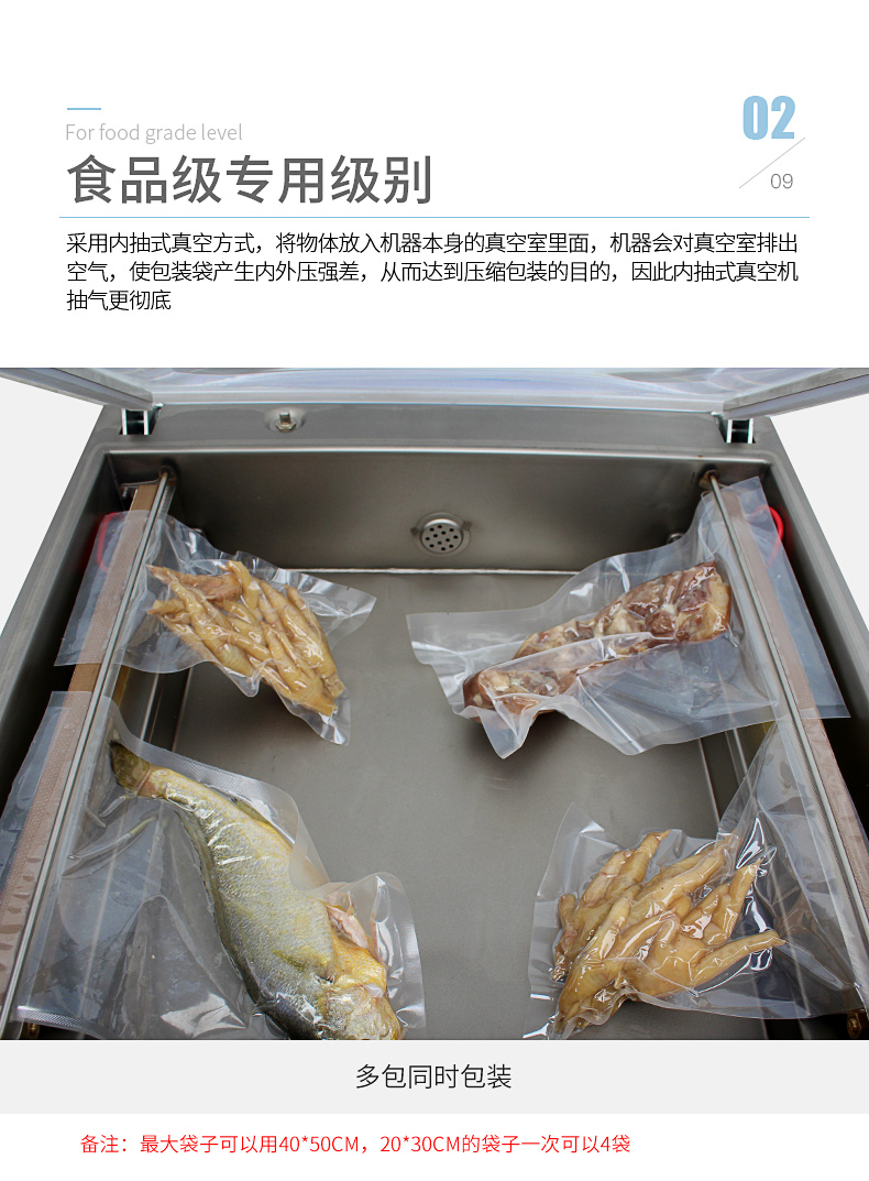 湖北电动真空封口机 礼品食品真空包装的作用:1.是为了减少包装内氧气含量,防止包装食品的霉腐变质,保持食品的色香味,并延长保质期。2、真空包装在食品方面固然有着重要的作用.但把它用在服装类物品加工上一样有着不凡的效果。3、真空包装相对于普通包装方法来说,它减少了物品占用的空间.并且有着防潮防尘防细菌等优点,使服装类物品的运输时更为便捷。4、*大地减少了某些意外而造成损失的可能性。真空包装袋用途:1、腌腊制品:香肠,火腿,腊肉,板鸭等.2、酱腌菜:榨菜,萝卜干,大头菜,泡菜等.3、豆制品:豆腐干,素鸡,豆沙等.4、熟食制品:烧鸡,烤鸭,酱牛肉.油炸类等等.5、方便食品:米饭,即食湿面,熟菜等.