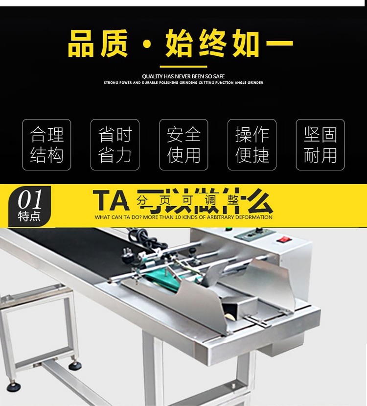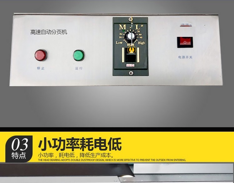 自动分页机机身全不锈钢制造,采用进口高*变频器配合国产电机,具有很高的稳定性,方便生产管理