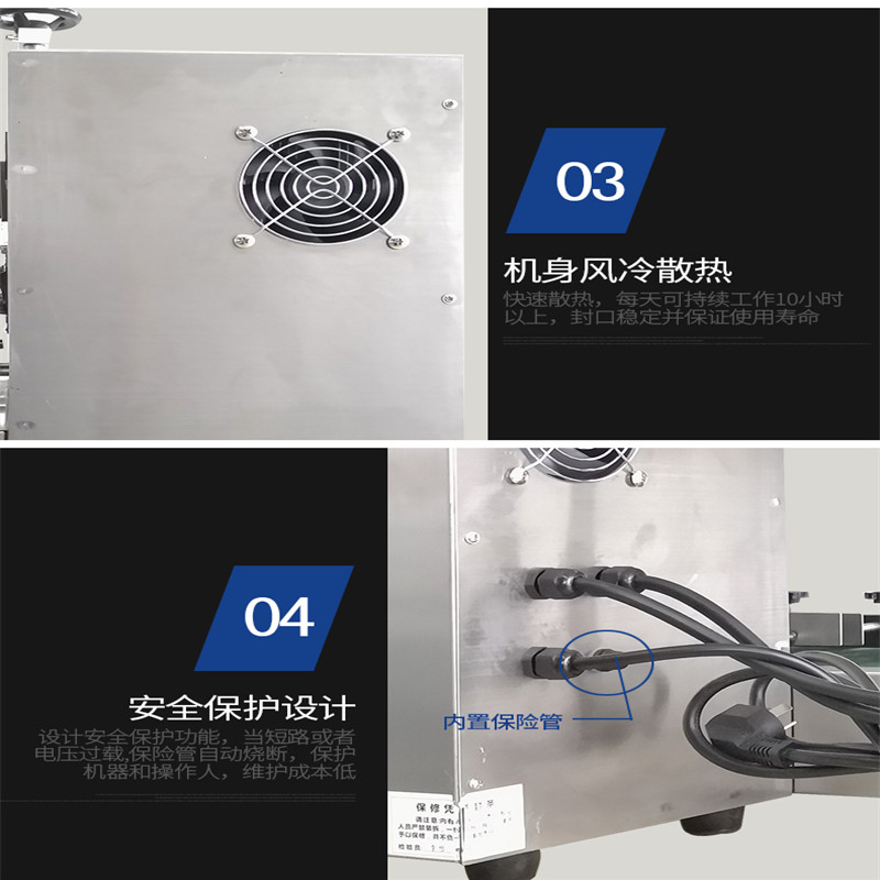 2.该款封口机具有封口速度快,全不锈钢模具成型外壳,使用方便,封口质量好,连续工作等特点,适合大批量产品生产,外形美观大方。