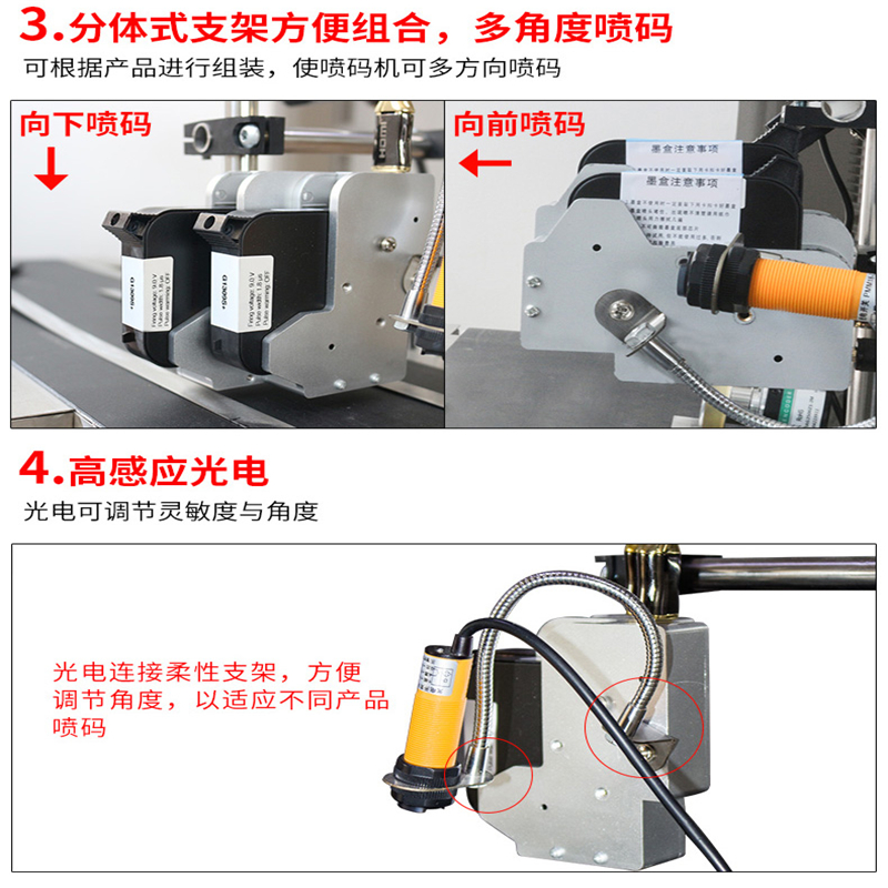 喷印方位:360度全方位喷码、不管是朝前朝上朝下任意喷码、满足生产所需
