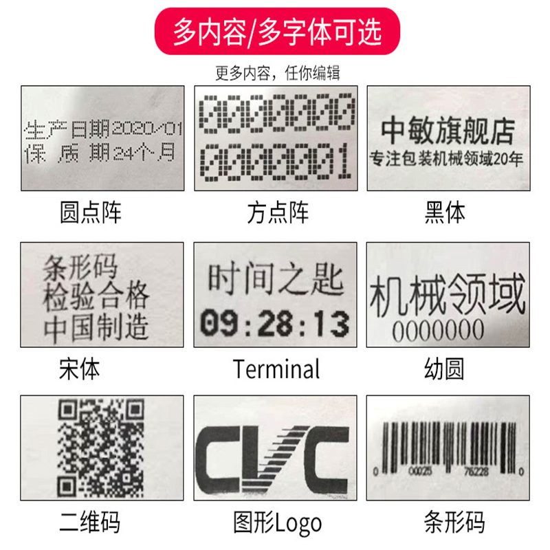 喷印字体:高清晰喷印字体(即印刷体)点阵字体、内置多种中文和英文字体
