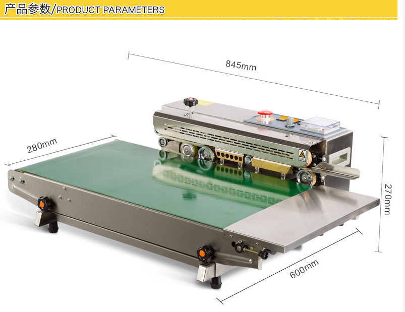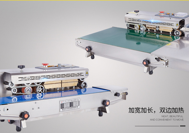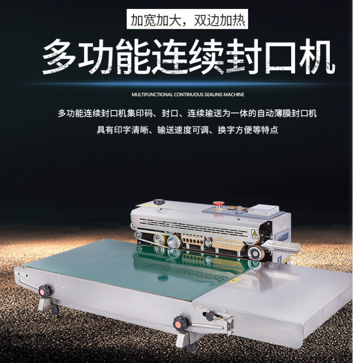 KD-770加宽型塑料袋自动封口机适用于小包装的封口,采用电子恒温控制和调速的传动机构,可以自动连续封合多种材料的塑料薄膜