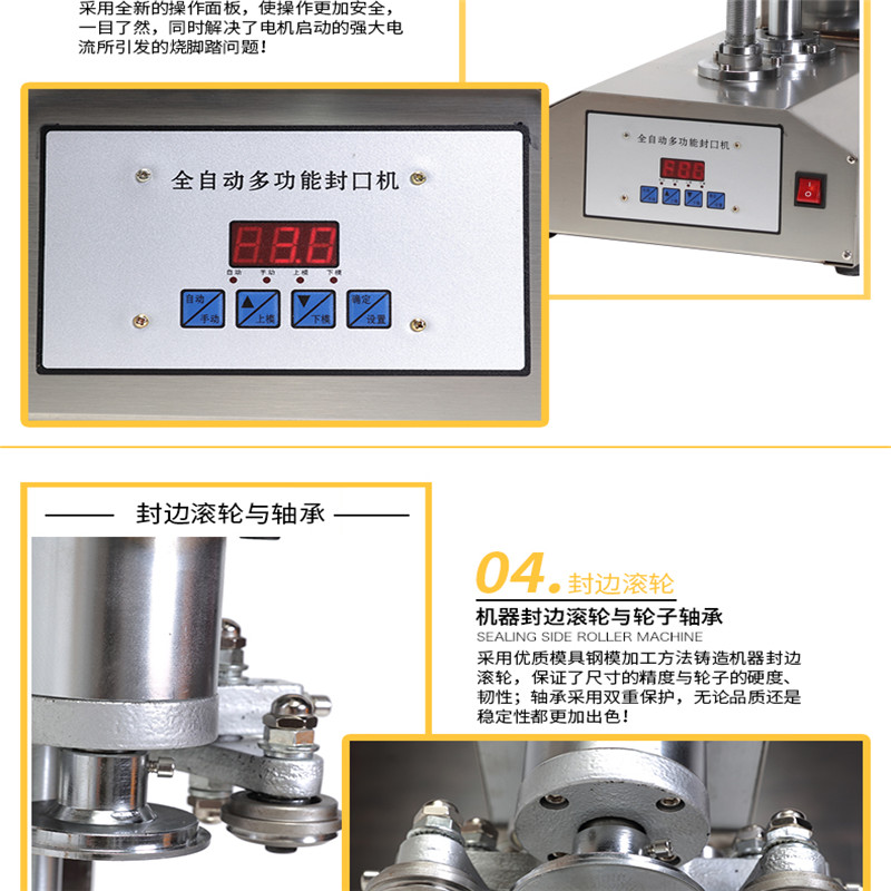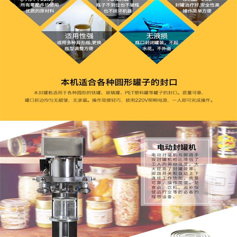 本电动封罐机与传统脚踏手扳封罐机相比:
