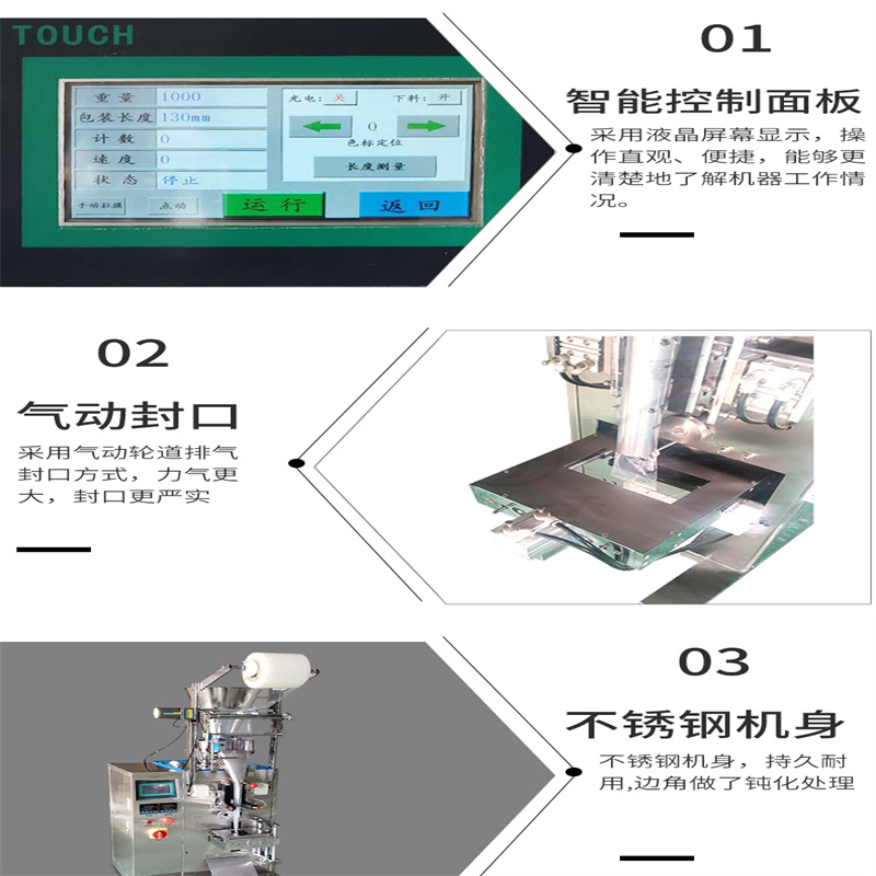 全自动颗粒袋装包装机技术特点: