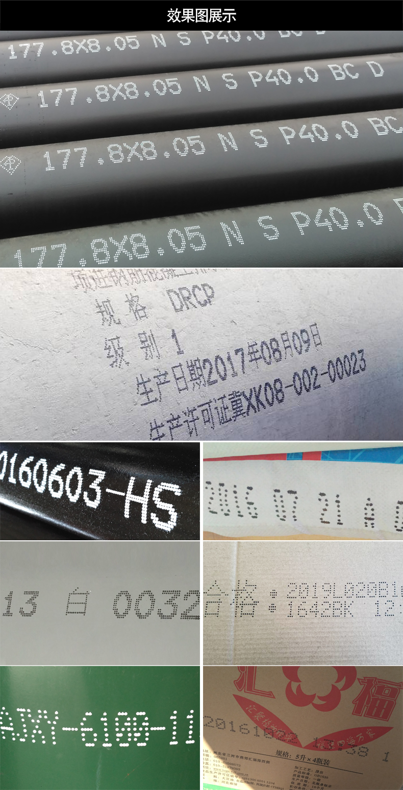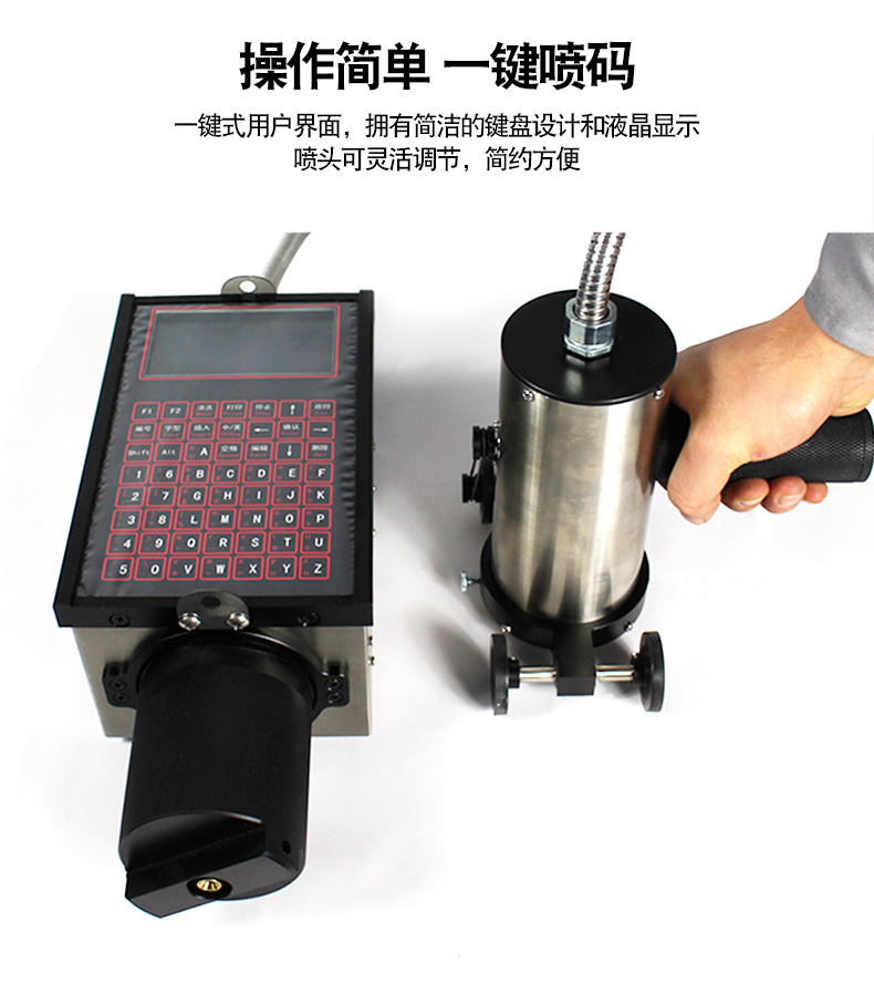 喷印高度2-53mm,能喷印二维码、条形码、图形、计数器、班次码、时间日期、中文/英文/数字等。
