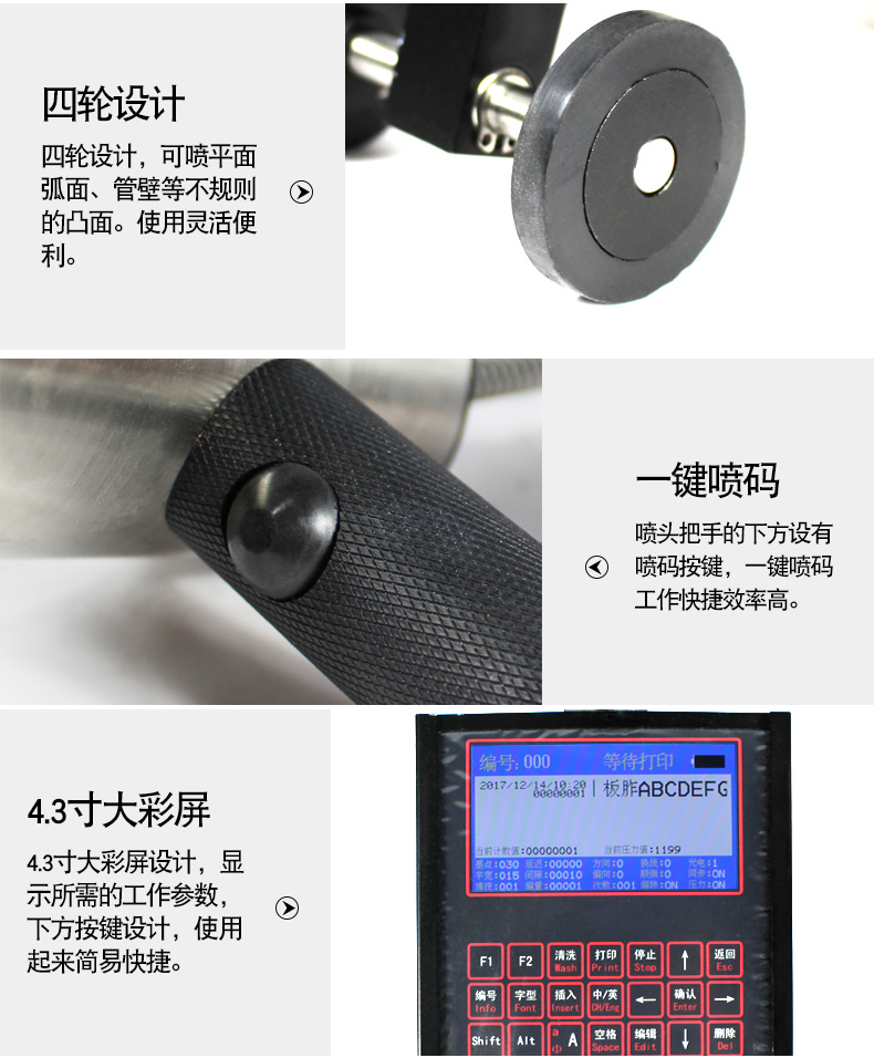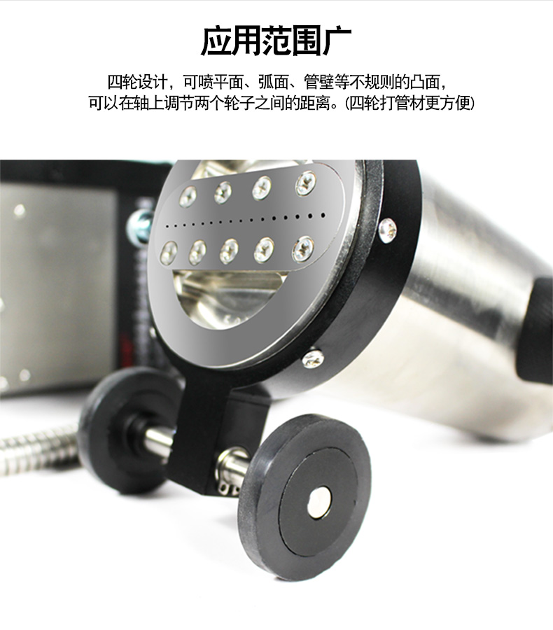 6、四轮设计,可喷平面,弧面,管壁,等任何不规则面