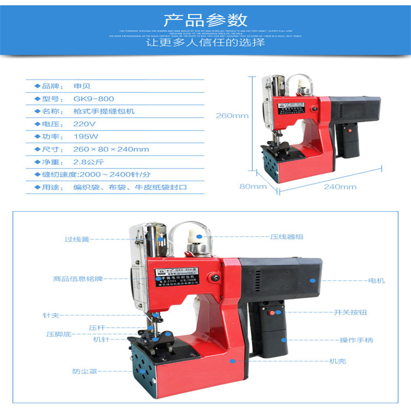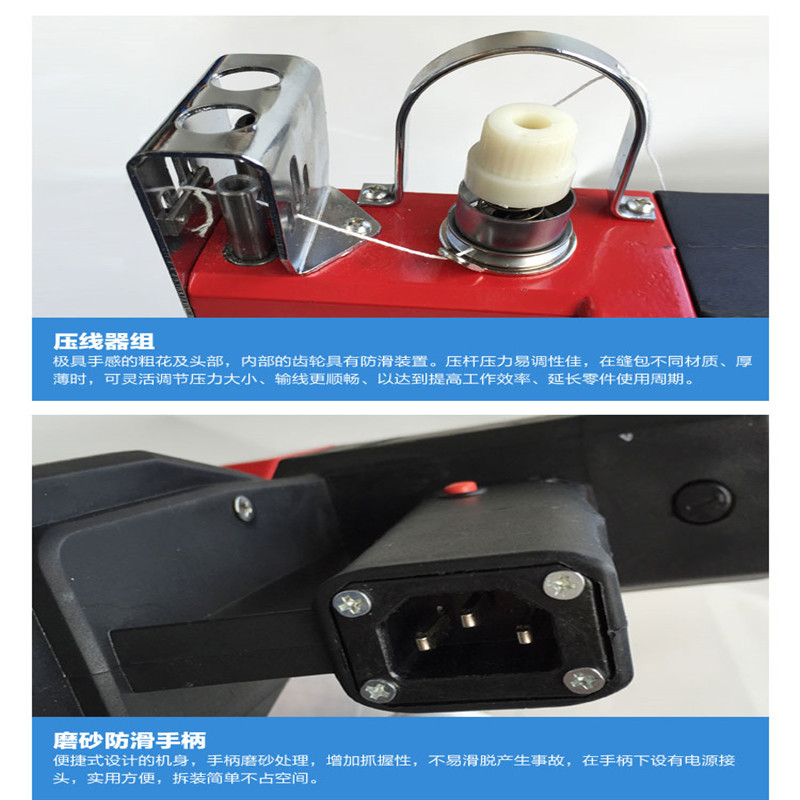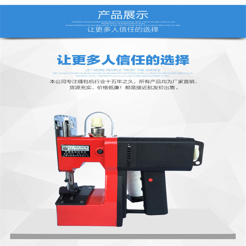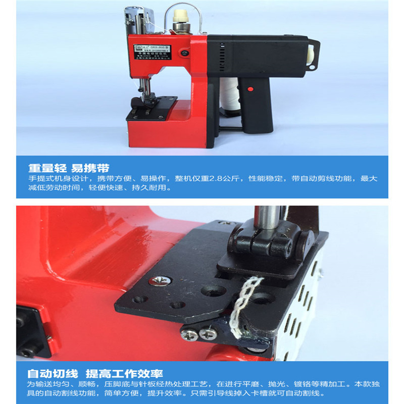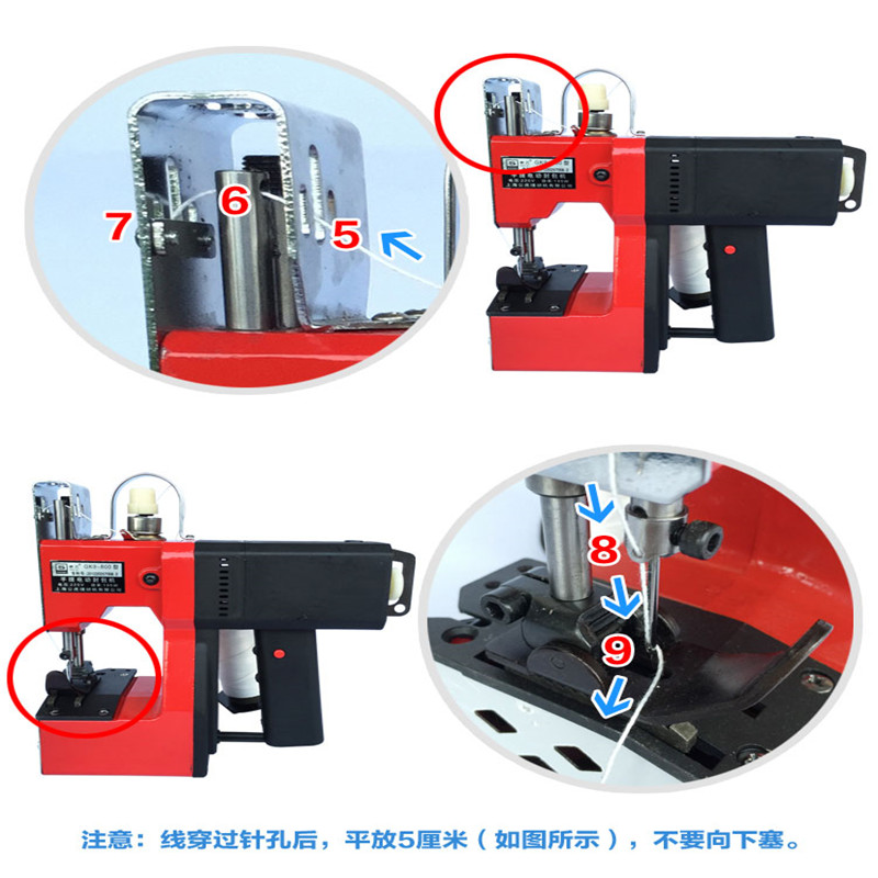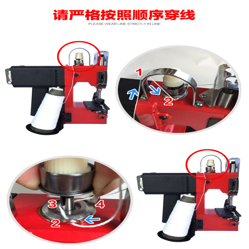缝包机操作方法:缝包机操作方法簡單,只要將線穿好,提起機器對準要縫製袋子,按動開關即可進行縫包工作。