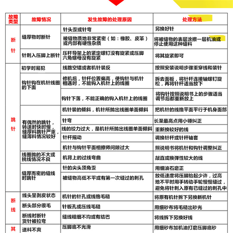 缝线压力调节的原则,对粗厚紧密缝料应该减少压力,对薄的缝料应该增加压力。在使用时需要增加或减少缝线压力时,只要拧紧或松开背上的压线螺母。
