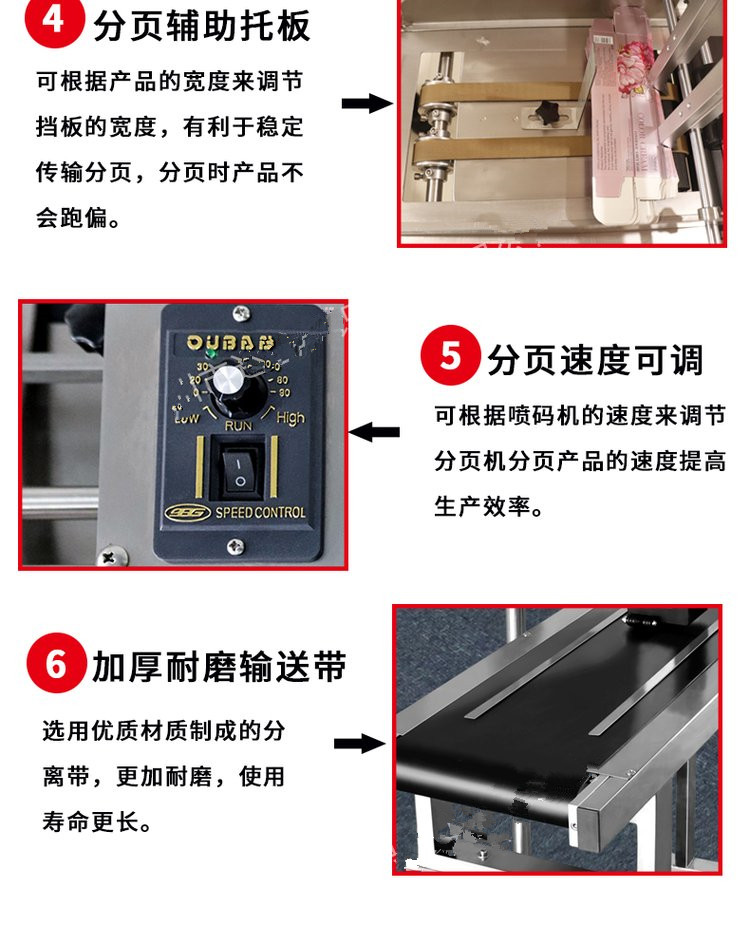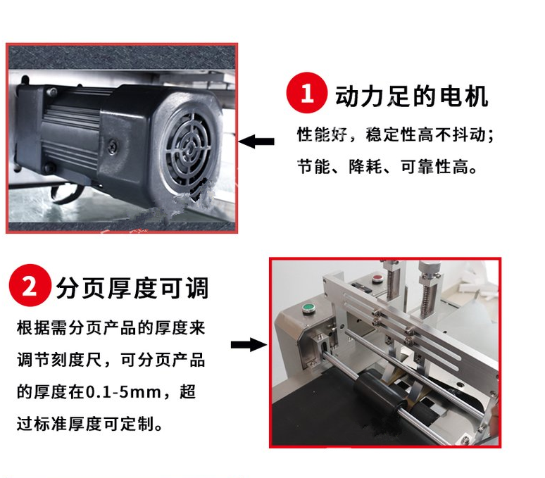 1、分页高速度:高*变频无级调速,高速自动分页10-500个/分钟,可大幅度提高生产效率。