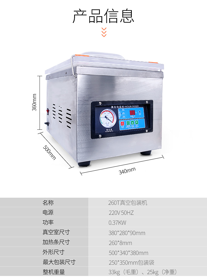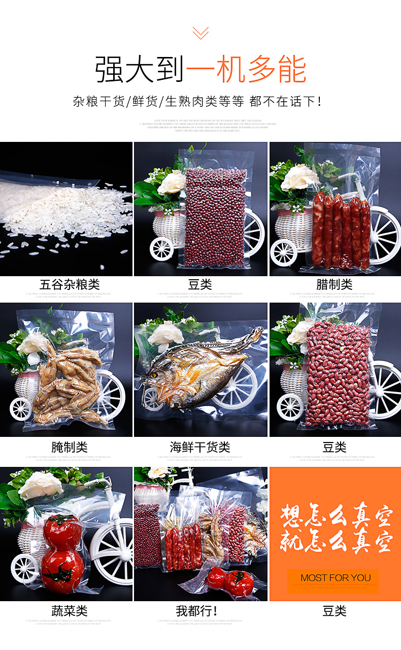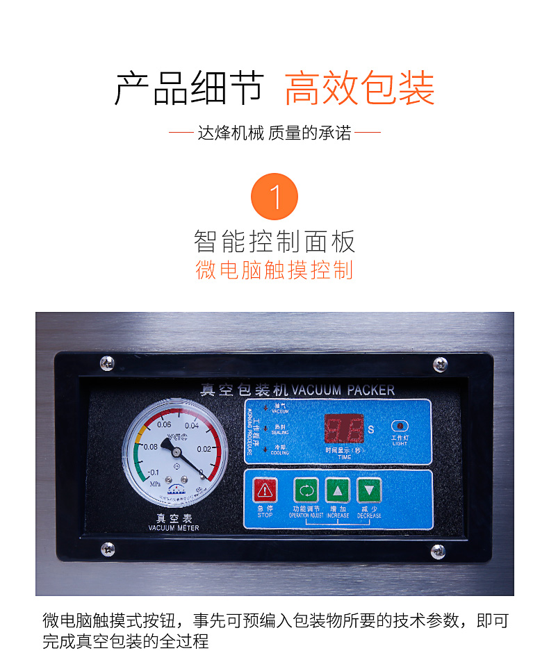 2)本机具有设计功能齐、性能稳定可靠、使用范围广、封口强度好、使用维修方便,是目前较*的小型真空包装机械。