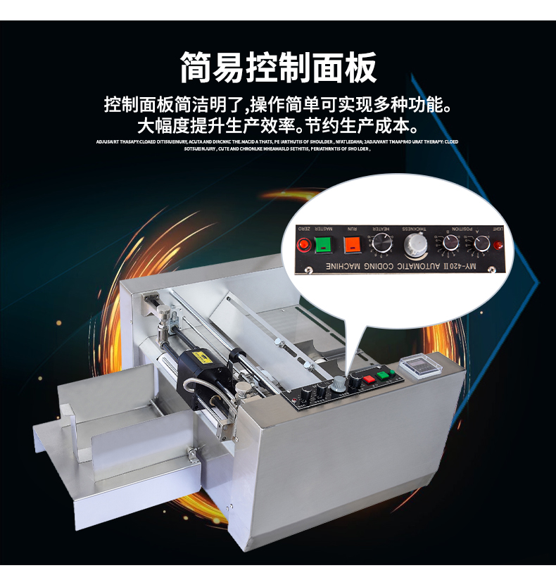 1、该打码机适用于食品、医药、日化等纸盒包装上压印生产日期、*期限以及生产批号等。