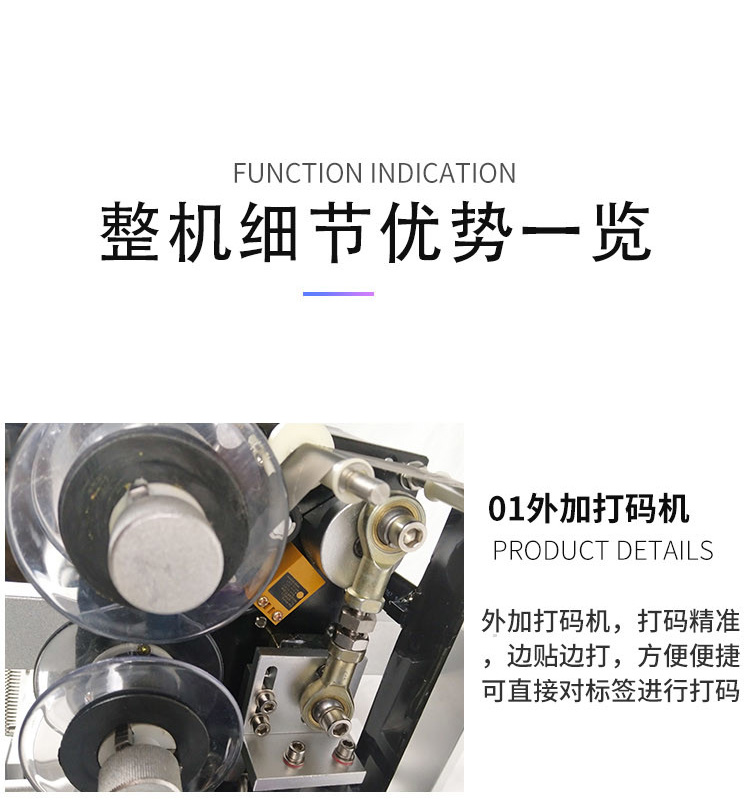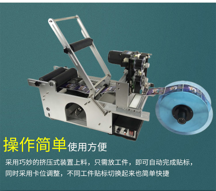 3.采用巧妙的挤压式装置上料,只需放工件,自动完成贴标;